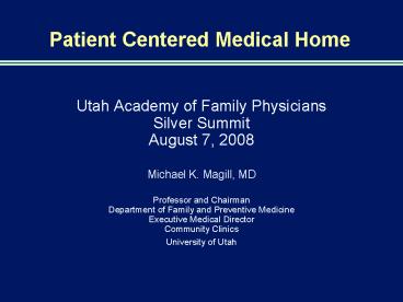 Title: Patient Centered Medical Home
