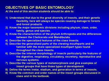 1OBJECTIVES OF BASIC ENTOMOLOGY At the end of this